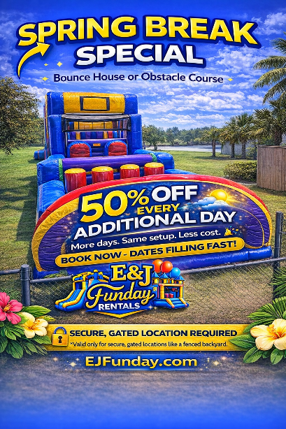 E&J is so dedicated to providing fun and exciting inflatables that will leave you with great lasting memories for all your events, that we've built "Fun Day" into our name E&J Funday Rentals!